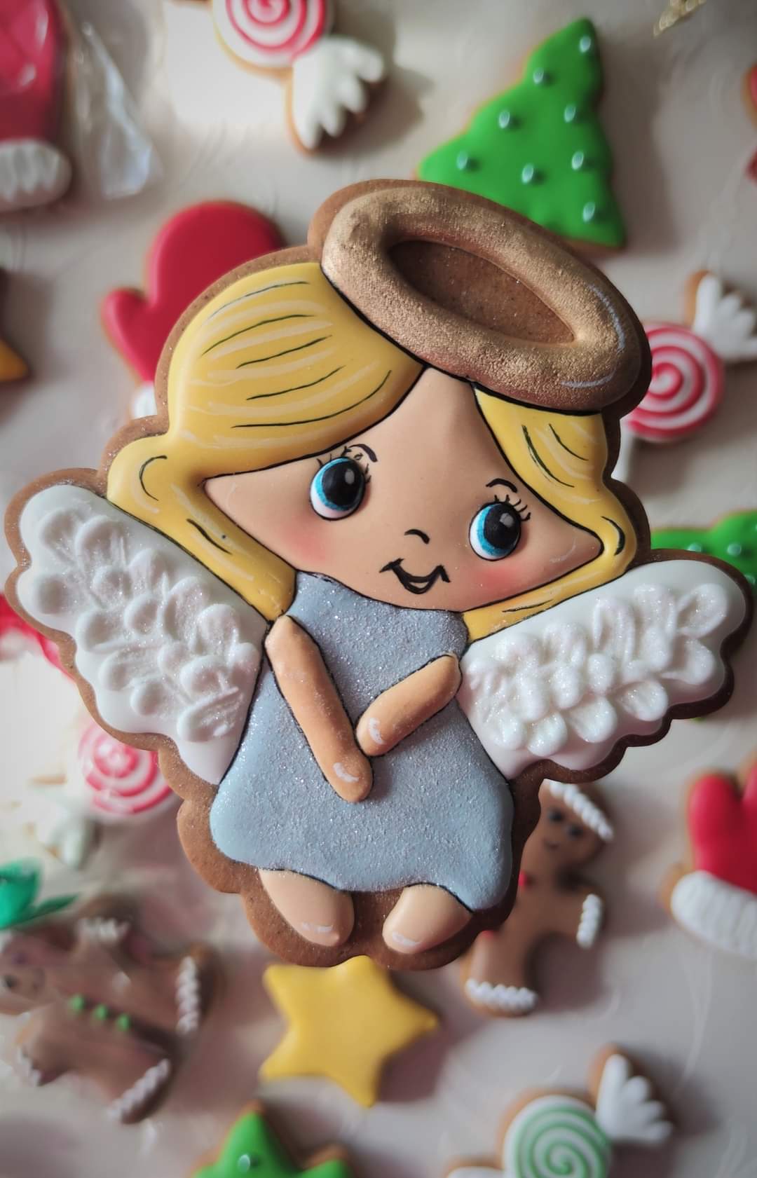 Piernik wykonany artystycznie przy użyciu lukru królewskiego (royal icing), w pełni jadalny. Pierniczek pakowany w celofan z ozdobną wstążką.