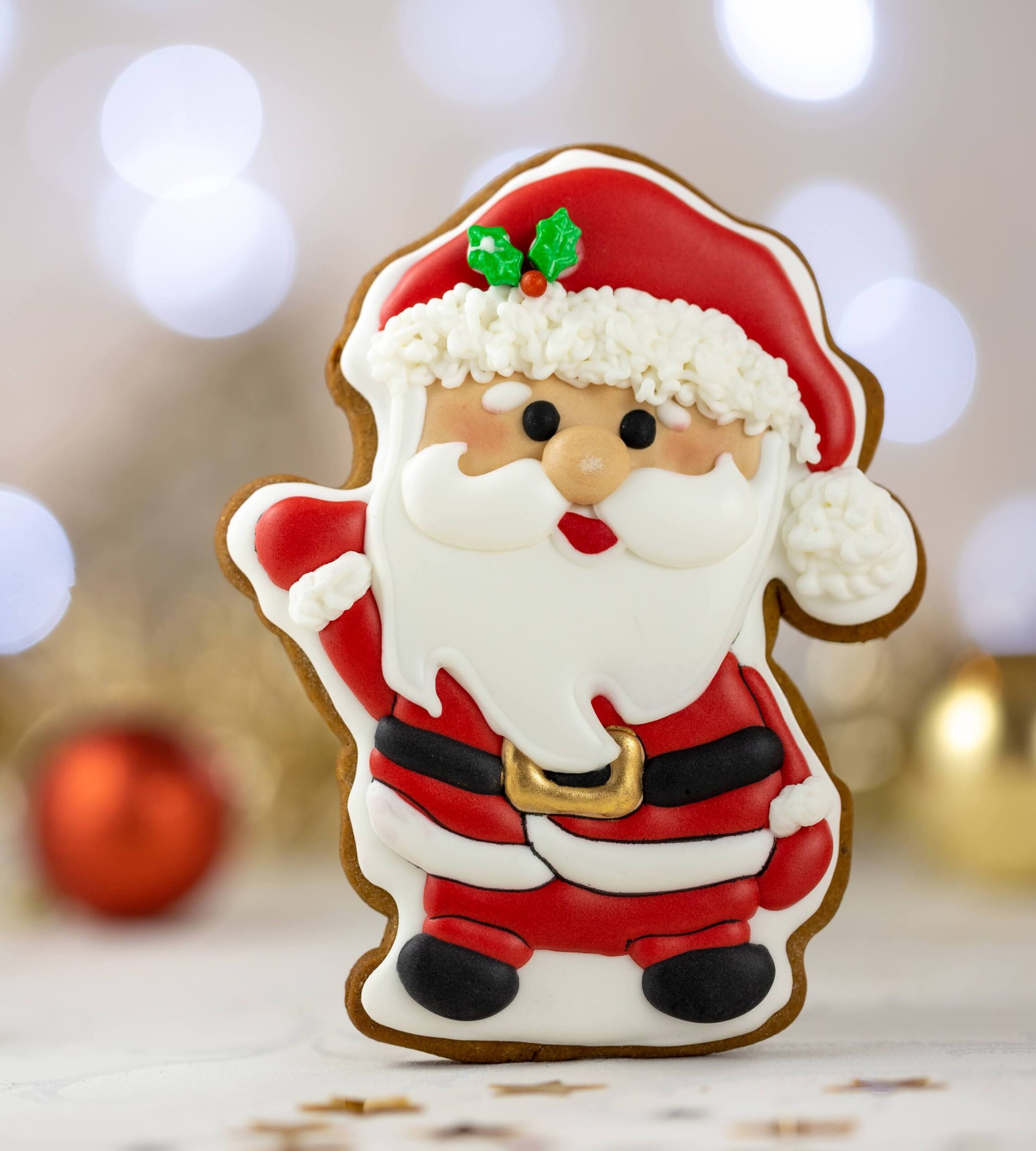 Piernik wykonany artystycznie przy użyciu lukru królewskiego (royal icing), w pełni jadalny. Pierniczek pakowany w celofanowy woreczek ze wstążką.