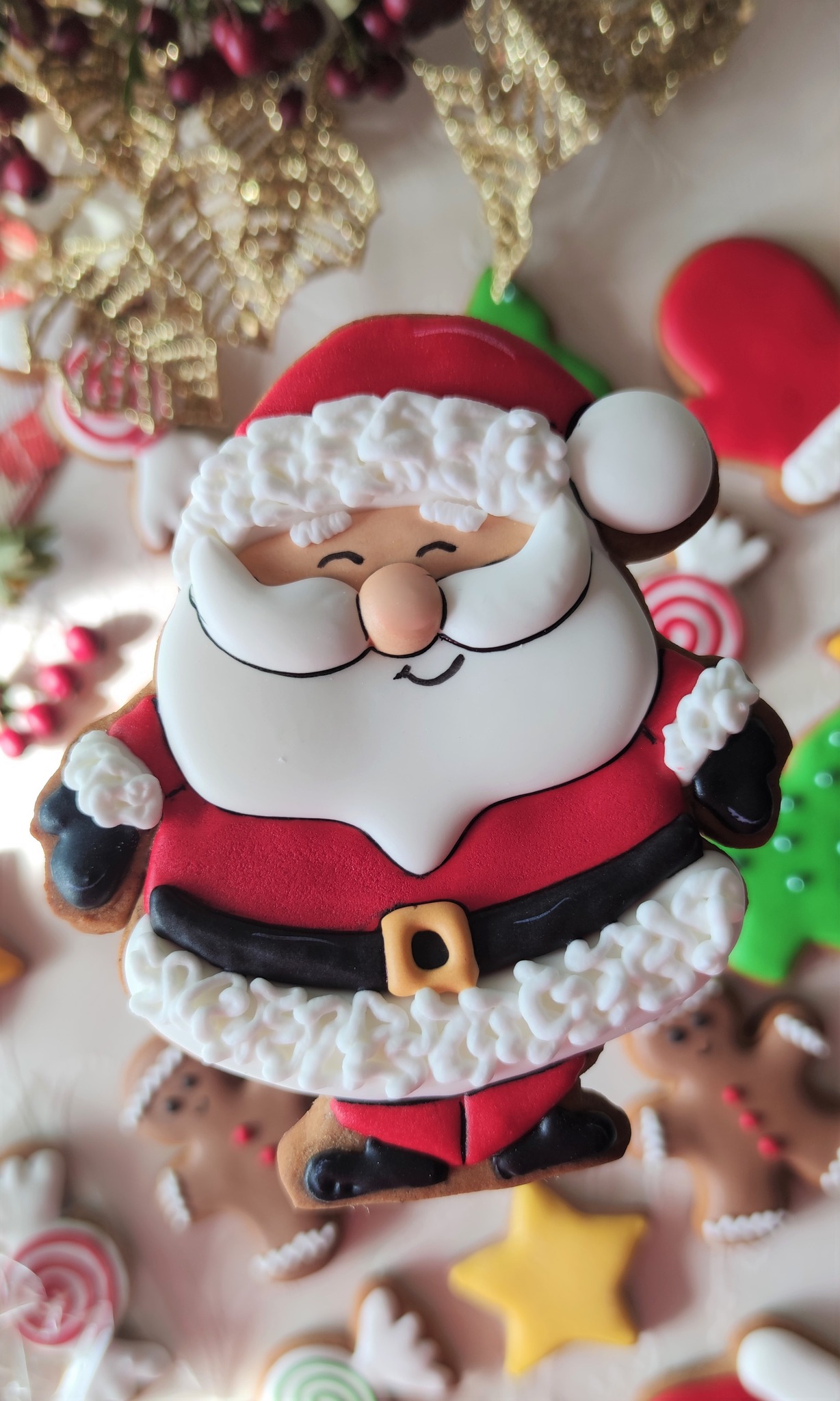 Piernik wykonany artystycznie przy użyciu lukru królewskiego (royal icing), w pełni jadalny. Pierniczek pakowany w celofanowy woreczek ze wstążką.