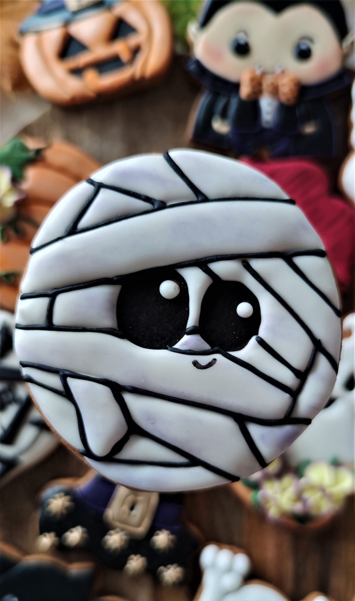 Piernik wykonany artystycznie przy użyciu lukru królewskiego (royal icing), w pełni jadalny. Pierniczek pakowany w celofanowy woreczek ze wstążką.