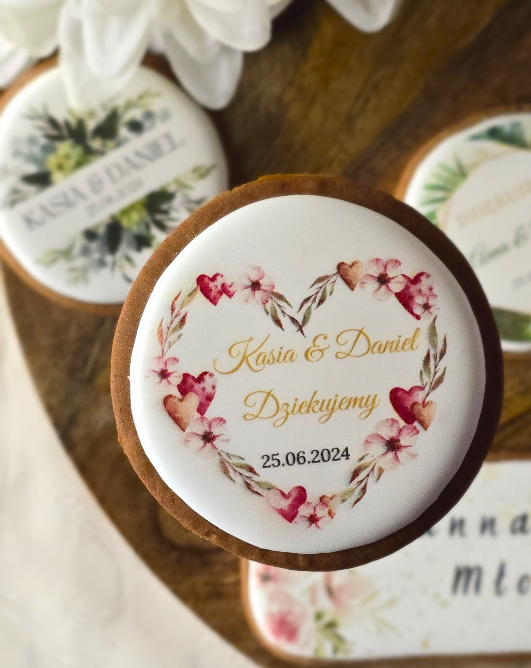 Piernik z jadalnym nadrukiem. Ciasteczko pakowane w celofan ze wstążką. Minimalna ilość zamówienia 10 sztuk.