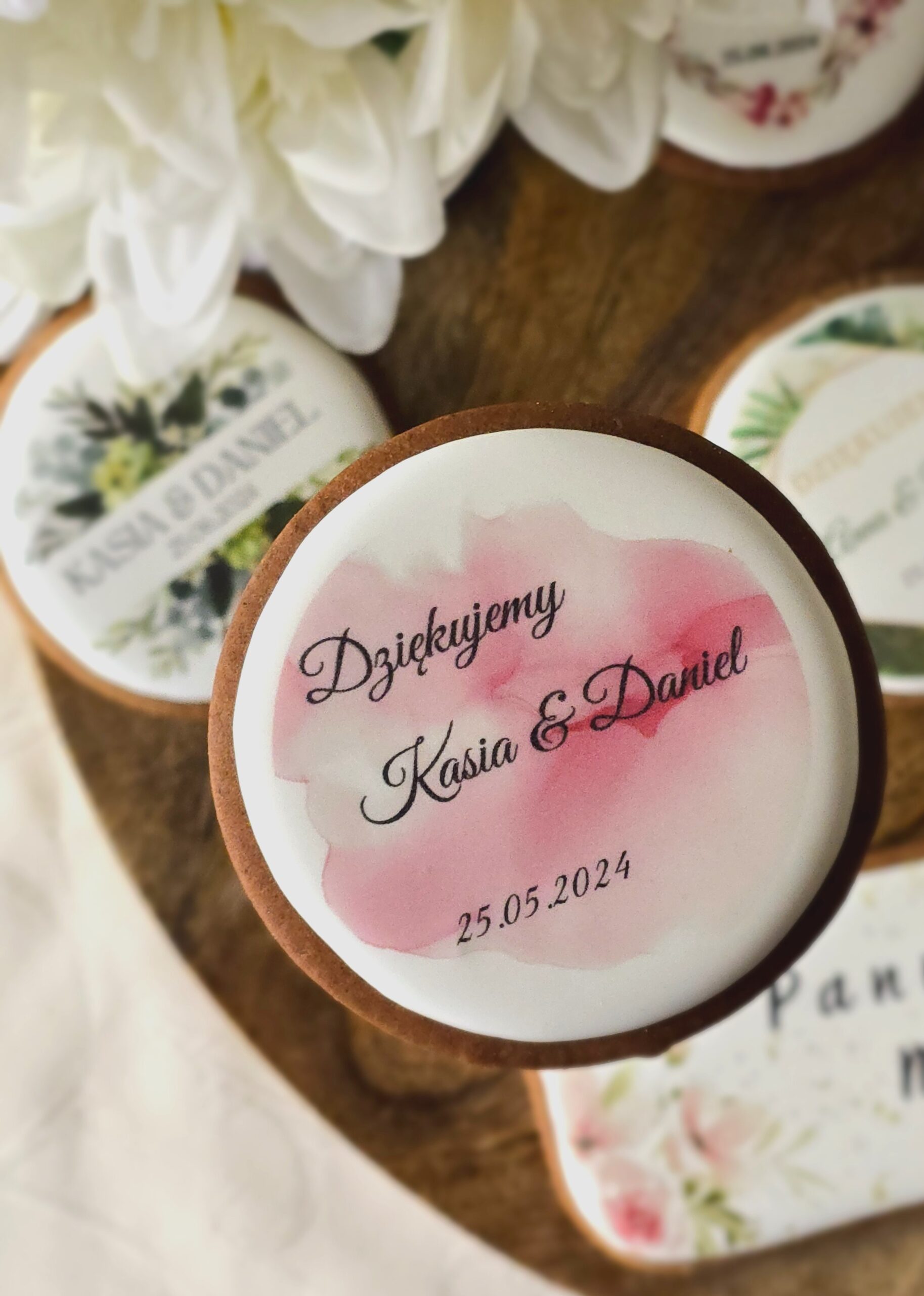 Piernik z jadalnym nadrukiem. Ciasteczko pakowane w celofan ze wstążką. Minimalna ilość zamówienia 10 sztuk.