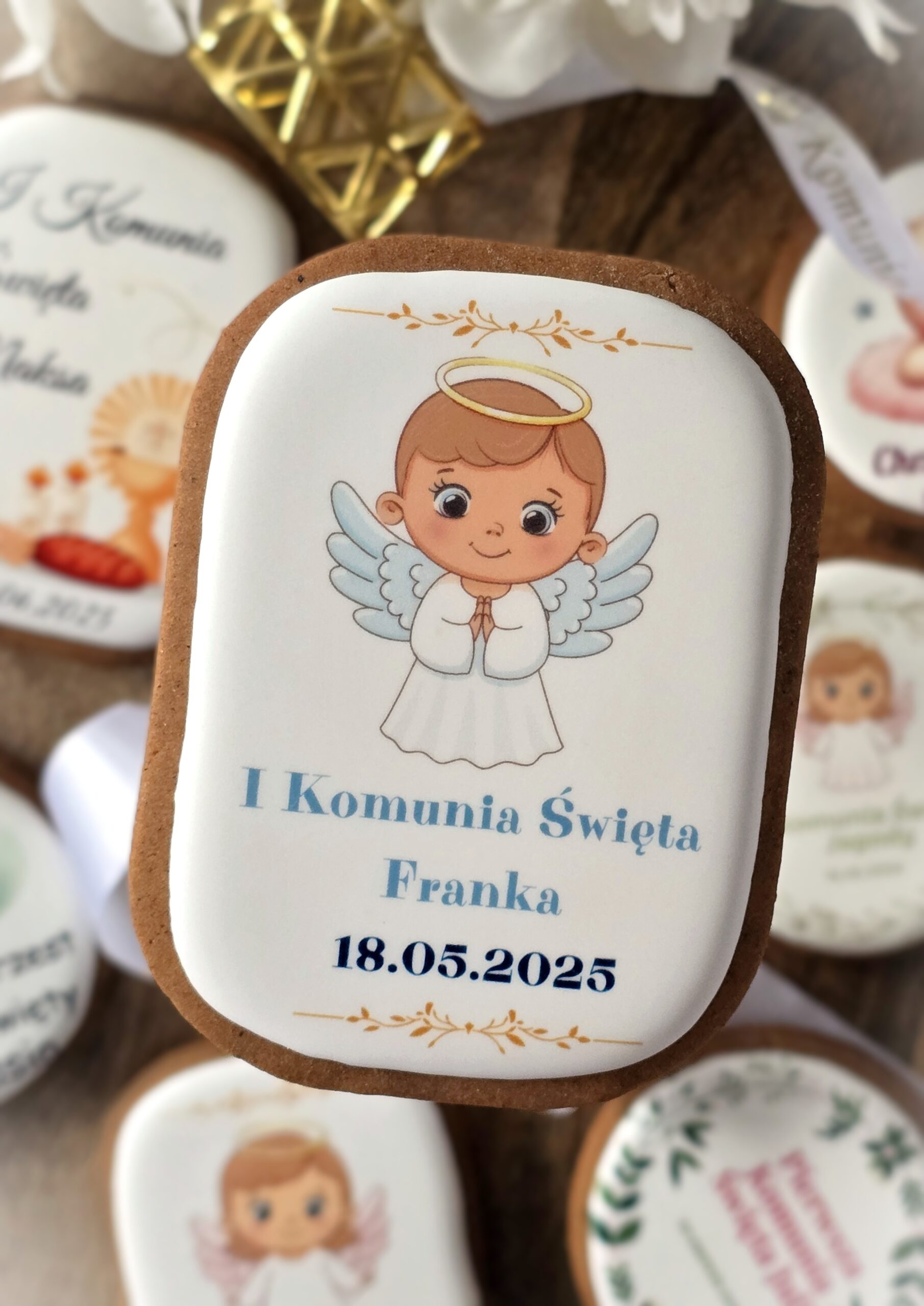 Piernik z jadalnym nadrukiem. Ciasteczko pakowane w celofan ze wstążką. Minimalna ilość zamówienia 10 sztuk.