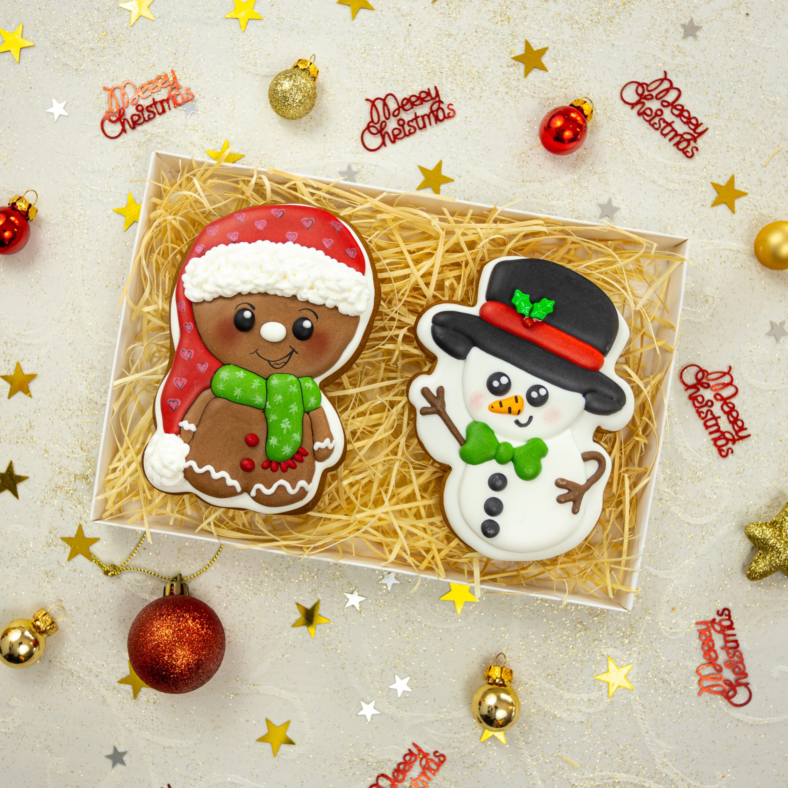 Pierniki wykonane artystycznie przy użyciu lukru królewskiego (royal icing), w pełni jadalne. Zestaw pakowany w ozdobne pudełko ze wstążką.
