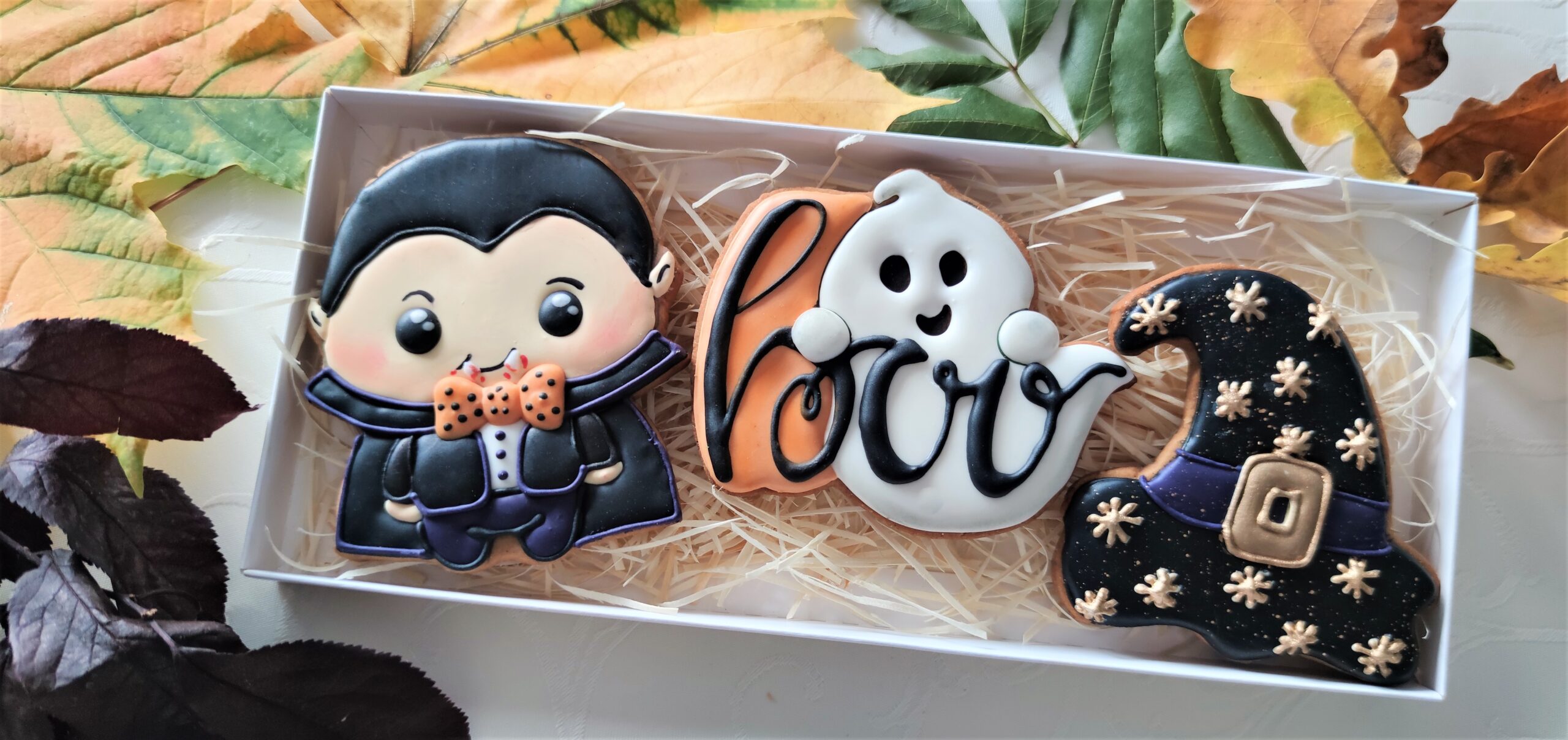 Pierniki wykonane artystycznie przy użyciu lukru królewskiego (royal icing), w pełni jadalny. Zestaw pakowany w ozodobne pudełko ze wstążką.