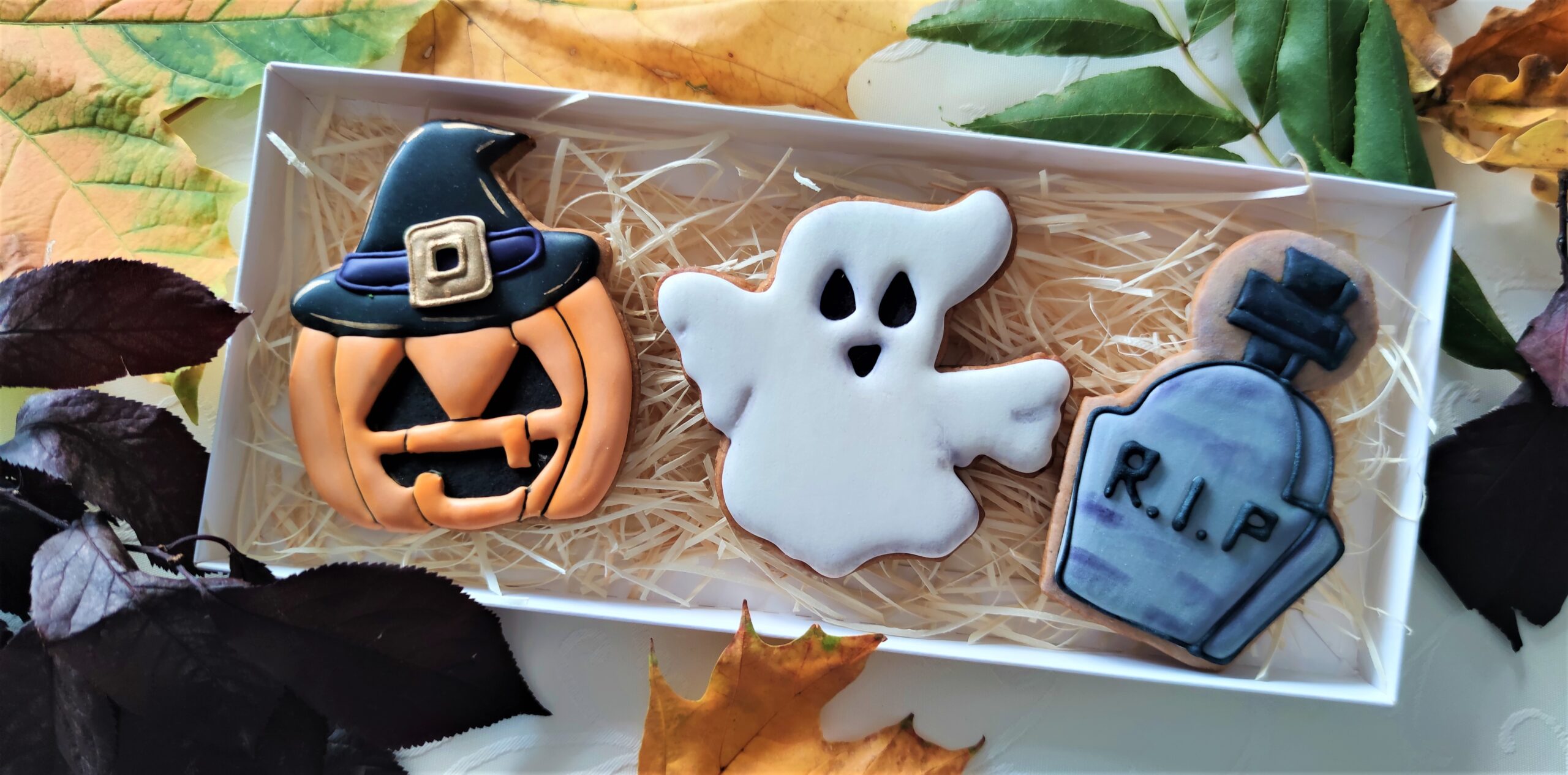 Pierniki wykonane artystycznie przy użyciu lukru królewskiego (royal icing), w pełni jadalny. Zestaw pakowany w ozodobne pudełko ze wstążką.