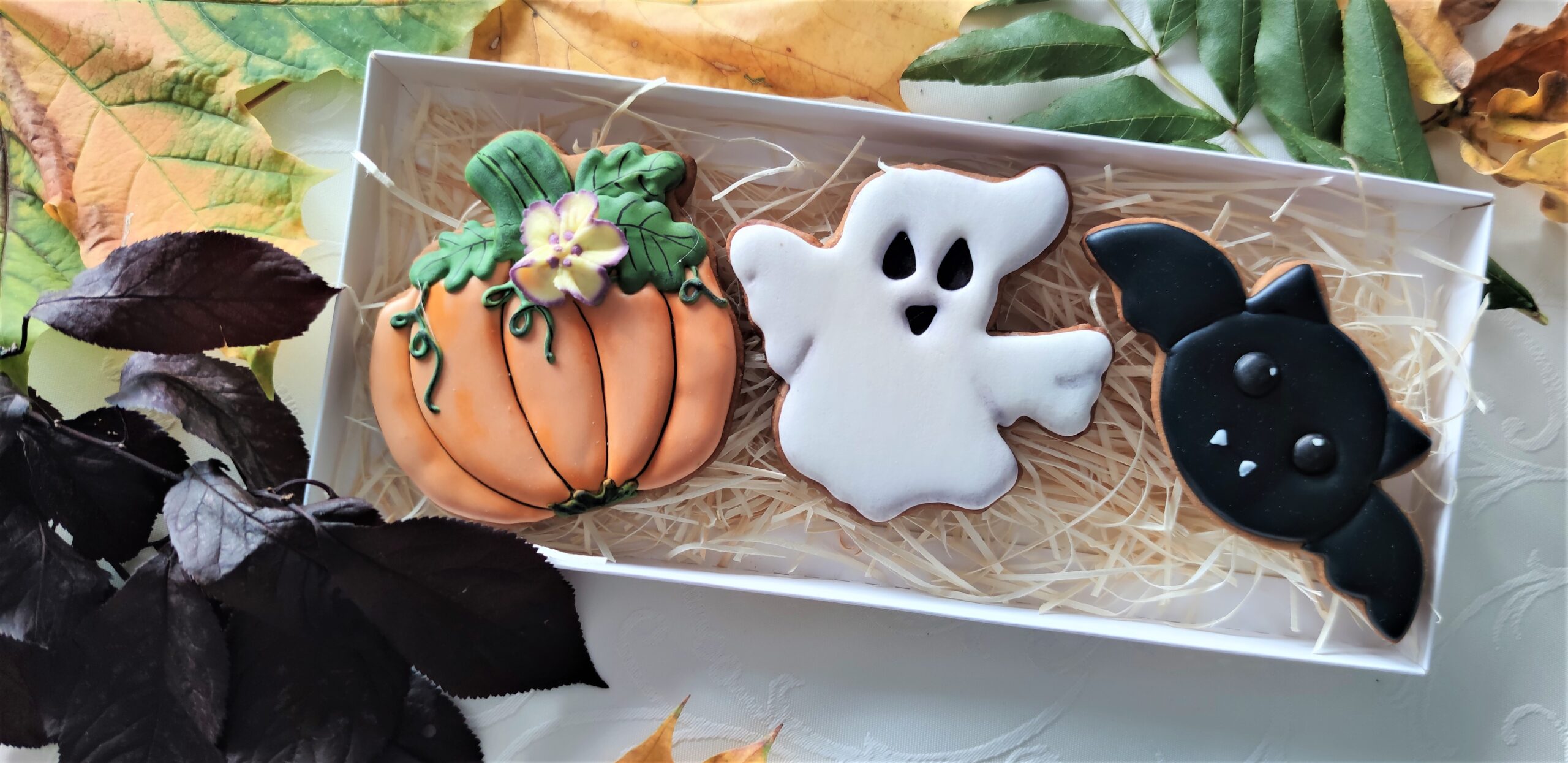 Pierniki wykonane artystycznie przy użyciu lukru królewskiego (royal icing), w pełni jadalny. Zestaw pakowany w ozodobne pudełko ze wstążką.