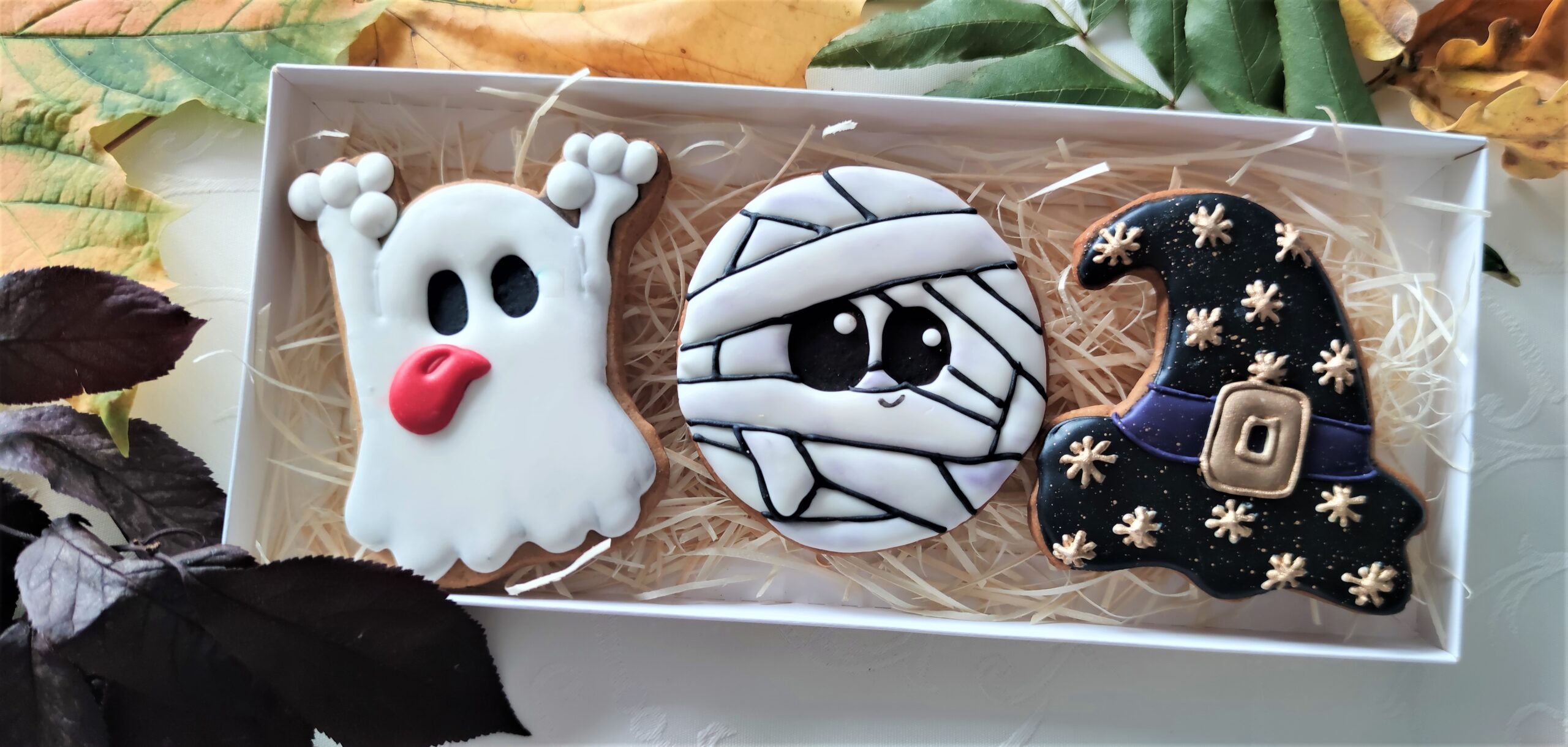 Pierniki wykonane artystycznie przy użyciu lukru królewskiego (royal icing), w pełni jadalny. Zestaw pakowany w ozodobne pudełko ze wstążką.